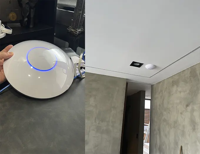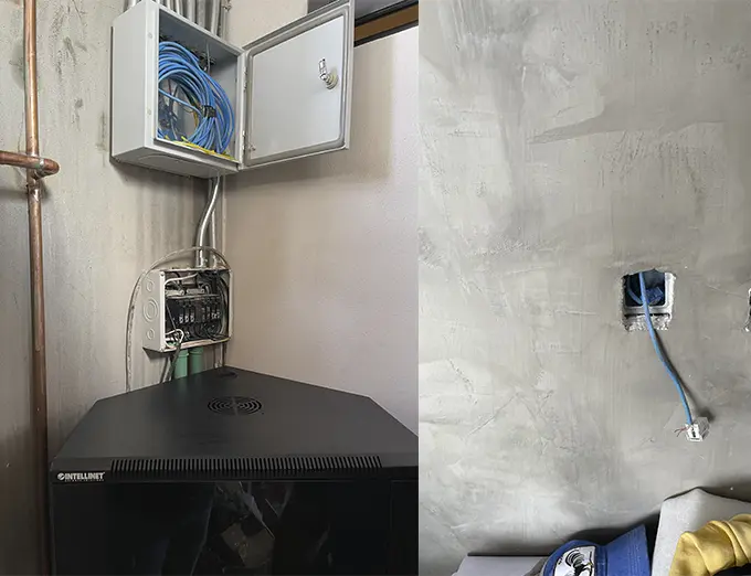 Tendido de Cableado de 18 Nodos de red, 4 Acces Point Ubiquiti, 6 Bocinas Alexa, Rack de pared de 6 Unidades, creación de red con Ubiquit, configuración de audio ambiental y escenas por medio de Alexa.